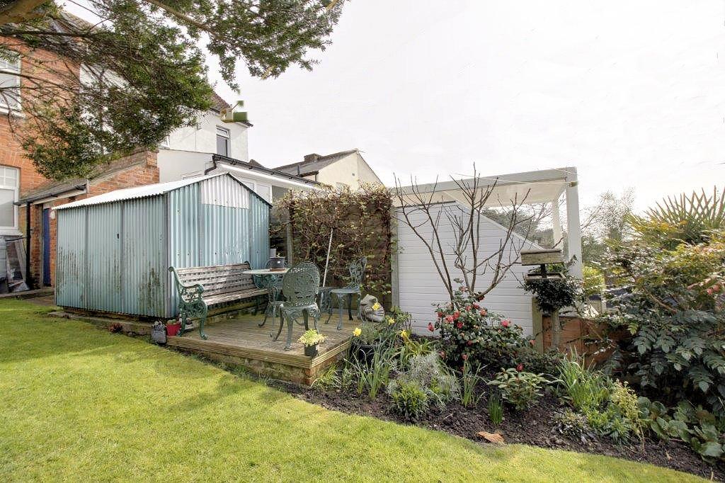 Rear Garden - Approximately 80ft rear garden with lawn area, flower beds housing established trees, fruit trees and shrubs, seating areas, fish pond, series of sheds and outbuildings, greenhouse