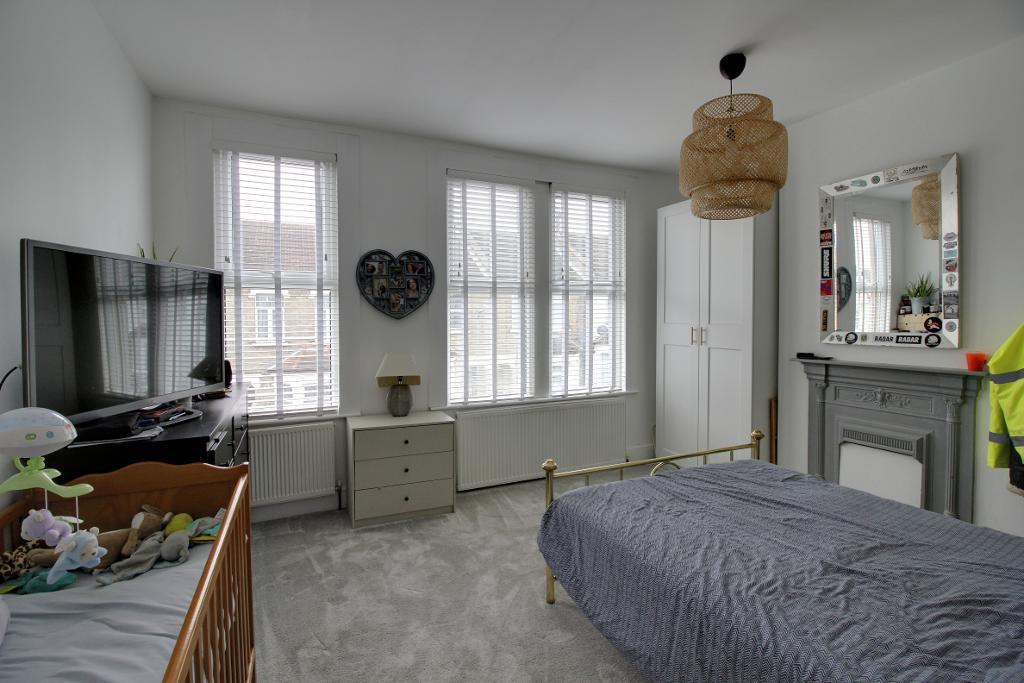 Bedroom One - 14' 5'' x 11' 9'' (4.4m x 3.6m) Two Double glazed windows to front aspect, smooth plastered ceilings, radiator, feature fireplace.