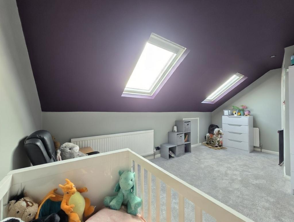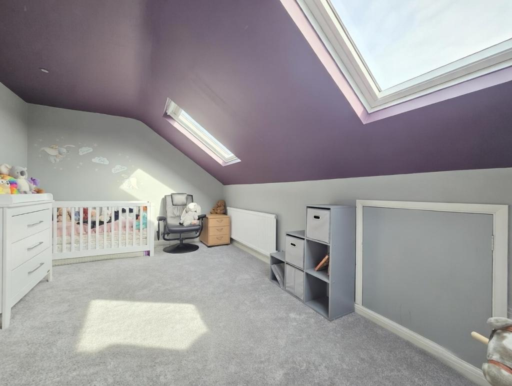 Bedroom One - 16' 7'' x 9' 8'' (5.07m x 2.97m) Two Velux windows to front, smooth plastered ceiling, radiator, eaves cupboard.