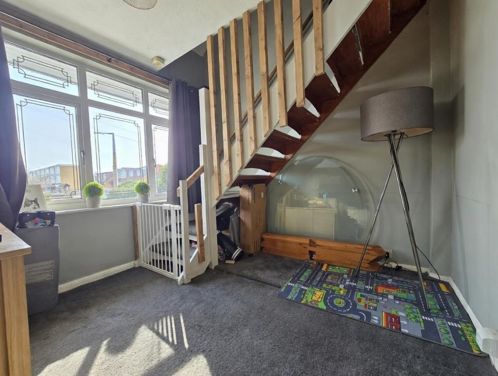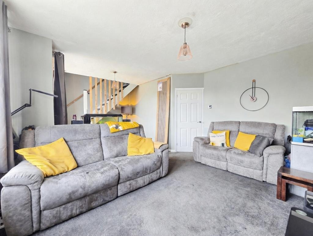 Lounge / Diner - 20' 0'' x 14' 3'' (6.1m x 4.36m) Two double glazed windows to front, textured ceiling, radiator, open tread stairs to
