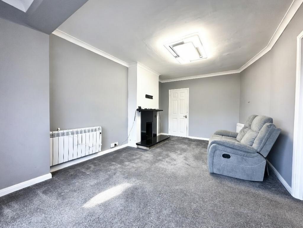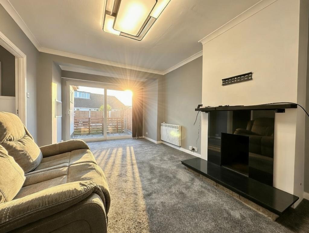 Lounge - 17' 10'' x 11' 0'' (5.45m x 3.36m) Double glazed sliding patio door to own section of garden, textured ceiling with coving, two electric radiators, large walk in cupboard, feature fire place