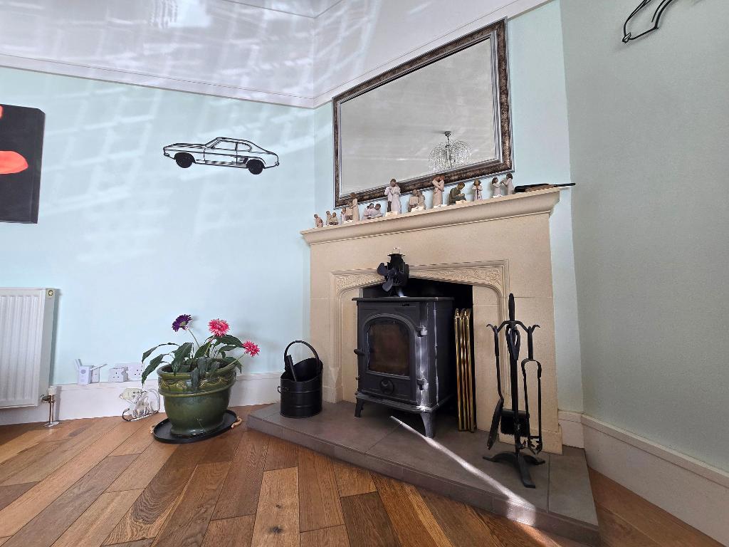 Lounge - 25' 2'' x 16' 0'' (7.69m x 4.89m) Spacious lounge with a large bay fronted double glazed window, second double glazed window to side, textured ceiling with coving, picture rail, log burning fire inset to Sandstone fireplace, Oak flooring, radiators.