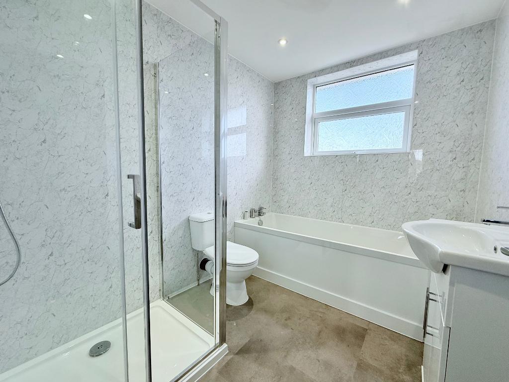 Bathroom - 8' 8'' x 6' 9'' (2.66m x 2.06m) Obscure double glazed window to rear, smooth plastered ceiling, modern four piece bathroom suite comprising of an enclosed shower cubicle, panelled bath, vanity hand wash basin, push button flush w/c, radiator.