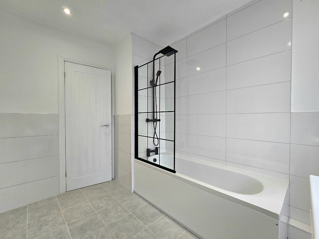Bathroom - 9' 5'' x 7' 1'' (2.89m x 2.18m) Obscure double glazed window to rear, smooth plastered ceiling, part tiled walls and tiled flooring, modern white bathroom suite comprising a panelled bath with mixer taps, fitted shower with overheard and handheld rinse, vanity hand wash basin, push button flush w/c, large chrome finish towel radiator.