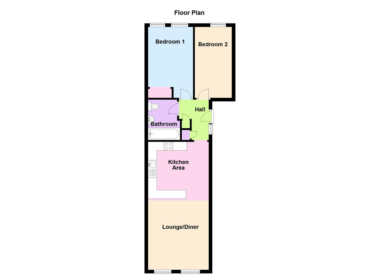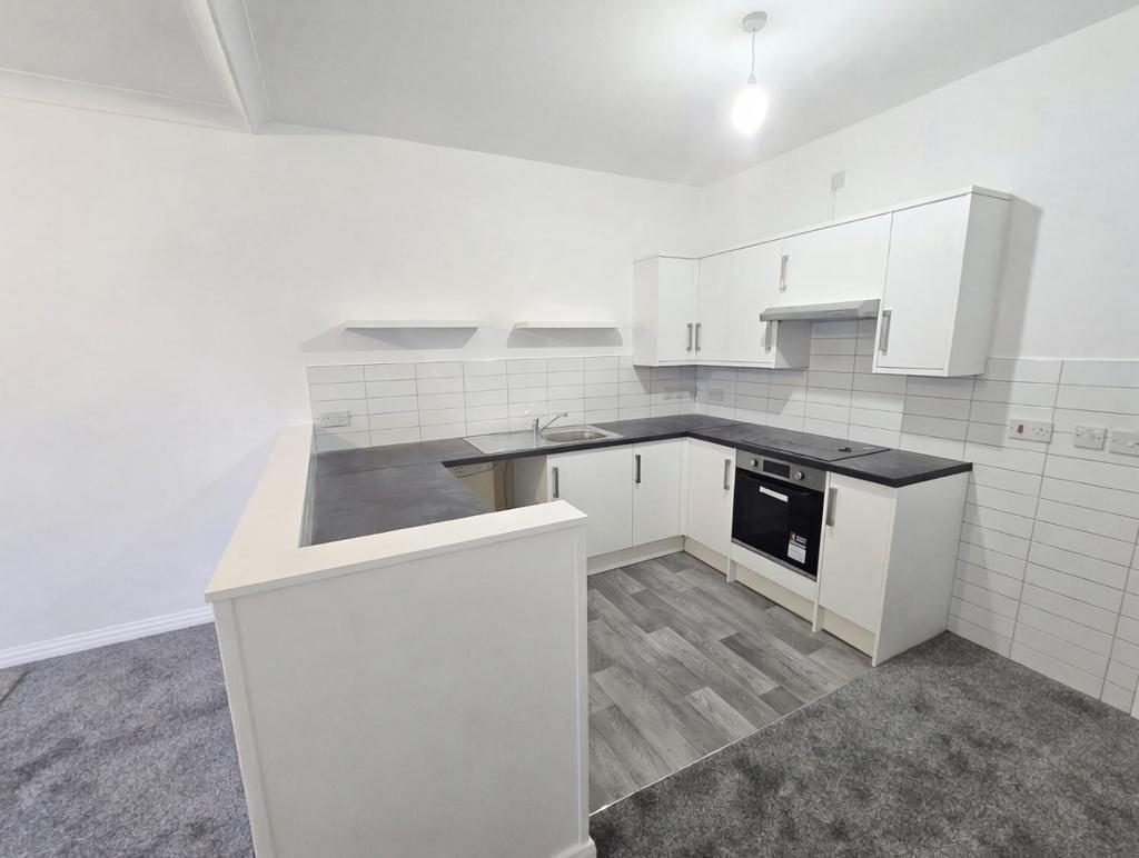 Opening Plan living Space - 24' 1'' x 11' 6'' (7.36m x 3.52m) Well presented open plan living space with smooth plastered ceiling with coving, large glazed windows to front. Kitchen area comprises of base and wall mounted units, floating shelves, rolled edge work surfaces with inset stainless steel sink unit, electric hob with extractor above, oven below, space and plumbing for appliances, vinyl flooring.