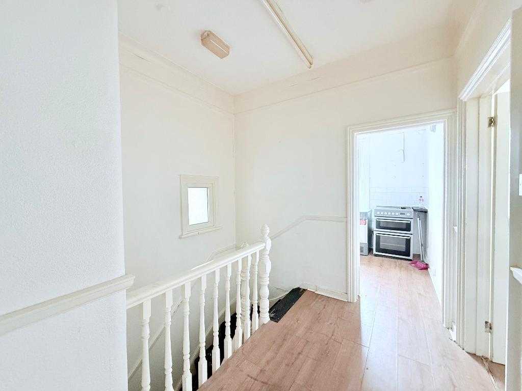 First Floor Landing - 11' 4'' x 8' 6'' (3.46m x 2.61m) Textured ceiling with coving, loft access, laminate flooring, built in cupboard, doors to